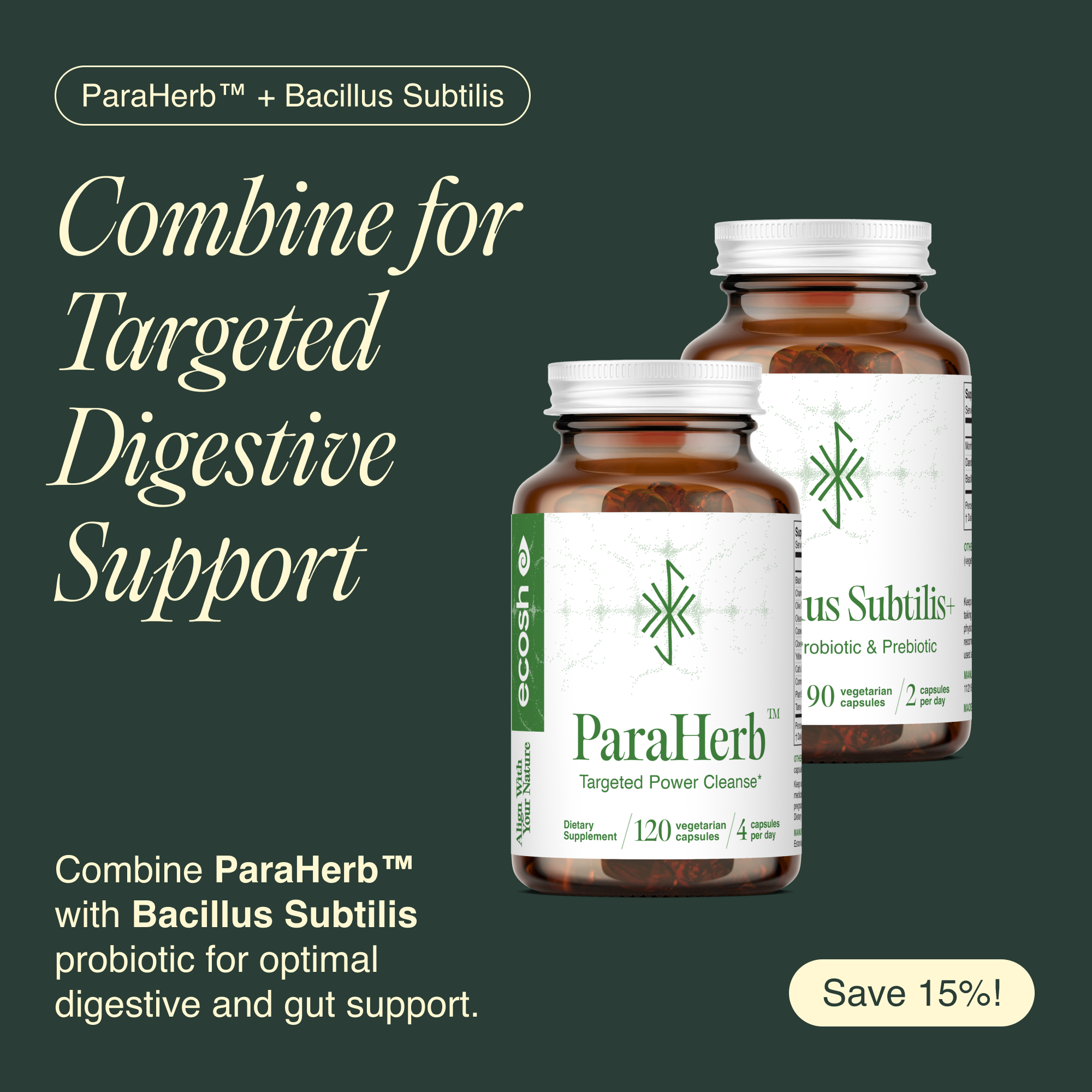 A: Yes! You can take both, simply space them out. For example, take Bacillus Subtilis+ in the morning, about 30 minutes before a meal. Then take Ecobiotic in the evening, with food. This allows both products to support your digestive wellness throughout the day.