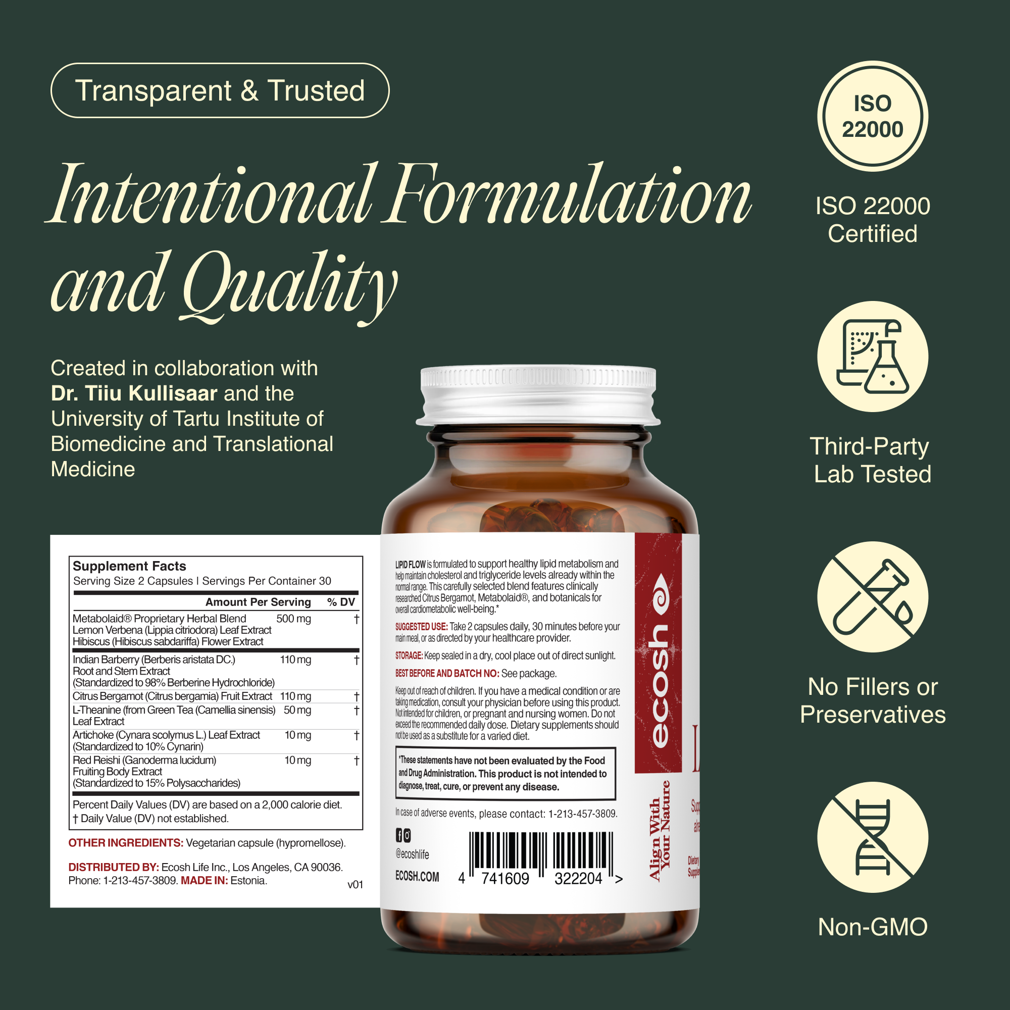 Rich in natural polyphenols that help maintain cardiovascular balance, lipid metabolism, and a calm, centered mood